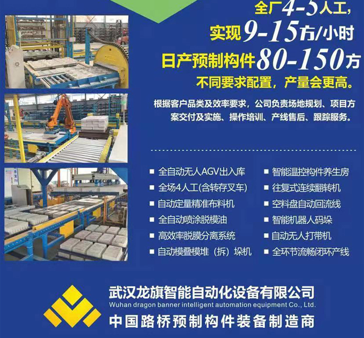 3、龙旗智能拥有预制构件生产线设备多项国家专利技术。预制块机械设备核心部件精工制造,采用抗疲劳设计,延长了主机的使用寿命。